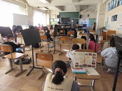 ◆4年生の音楽は、無形文化財である伝統的な楽曲をDVDで鑑賞しているよ。