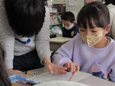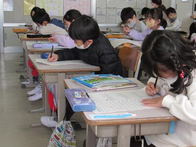 ◆5年生は、日ごろお世話になっている方々に気持ちを伝えようと手紙を書いているよ。