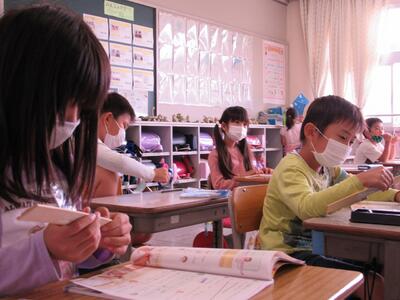 マス目のある小黒板を活用し、ていねいに、分かりやすく指導しているからこそです。