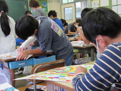 ◆5年生に、「みんなが過ごしやすい町」報告書の作成をお願いしました。