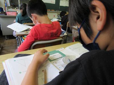 実際に分度器を使って、試行錯誤を繰り返しているね。