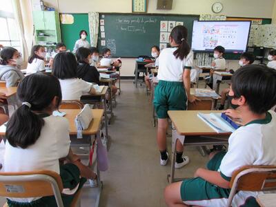 3学級の研究授業は、3人の教員(教育実習生を含む)が全力で取り組むよい授業でした。