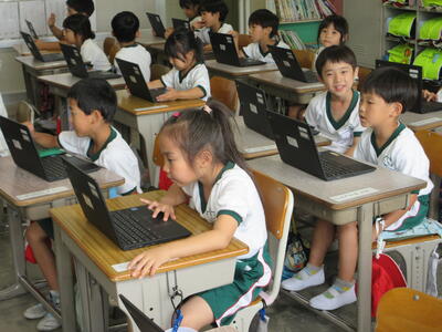 ★国語の授業では、学んだ内容をタブレットを使って確めていました。タブレット操作にも慣れてきました。