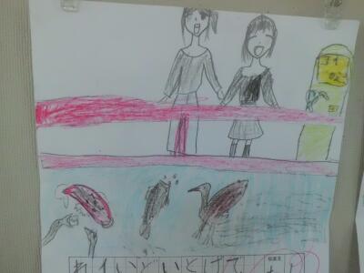 学区内にあるスーパー(生鮮市場TOP春日部店)の店内に、本校1・2年生、たんぽぽ・ひまわり学級の児童の作品が数点展示されています。
