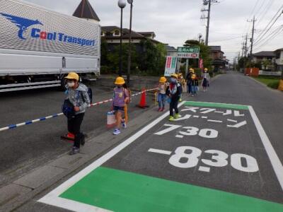 昨年度末に塗装していただいたスクールゾーンの道路表示です。