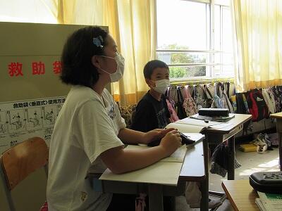 ◆昨晩の地震について、全校で指導しています。こちらは、2年生。