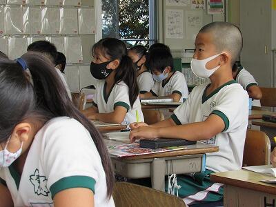 ◆3年生の国語「ちいちゃんのかげおくり」では、5の場面の役割を考えているよ。