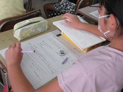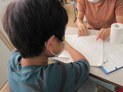 ◆「ひまわり学級」は、国語と書写の課題を進めていますよ。