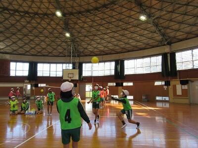 ◆幸松ドームでは、6年生がソフトバレーボール大会を始めるところですよ。