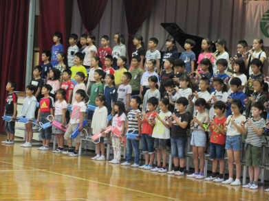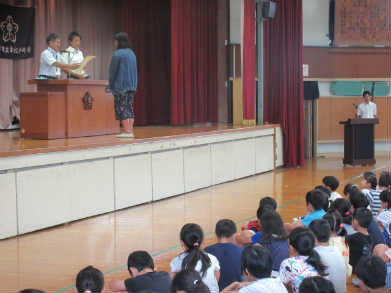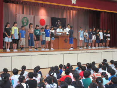 1学期、陸上大会などで活躍した児童が表彰されました。