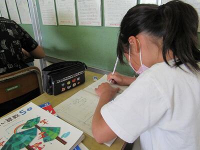 ◆こちらの6年生も、指を折りつつ文字数を考え、俳句を作り始めているよ。