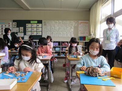 2年生の図工では、ねん土を使って造形遊びをしているよ。