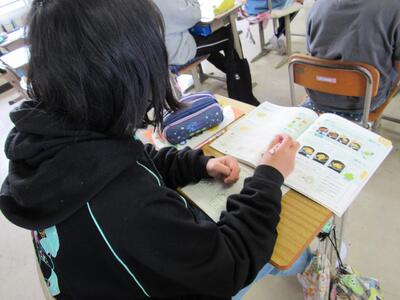 ◆こちらの1年生は、連絡帳の書き方を学んでいるよ。