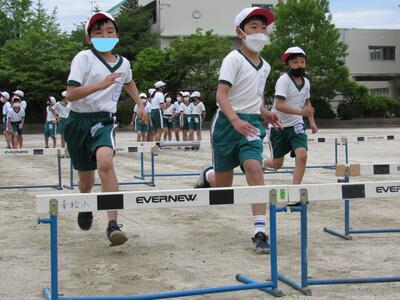 ◆5年生は、本格的なハードル走に挑戦しているよ。