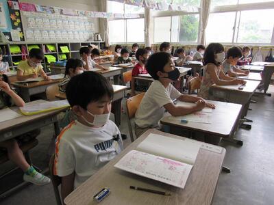 ◆2年生の書写では、硬筆で漢字の学習をしているよ。