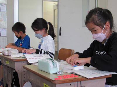 ◆「ひまわり学級」の硬筆練習は、いつも以上に集中しているよ。