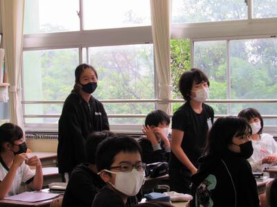 2つのクラスとも、給食の先生の話をよく聞いて、熱心に取り組んでいるね。