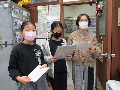 ◆業間休み、5・6年生の保健委員の3人が健康の秘訣をインタビューしにきています。