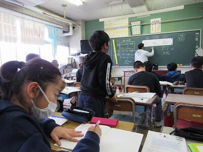 2つ目の教室では、代表児童の考えを基に、みんなで練り上げをしているよ。