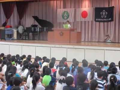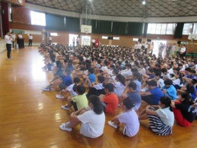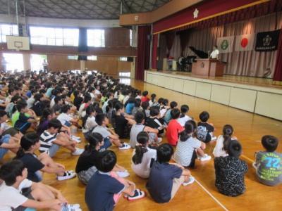 体育館での始業式。みんな落ち着いてお話を聞くことができていました。