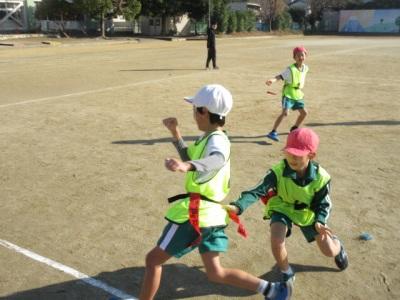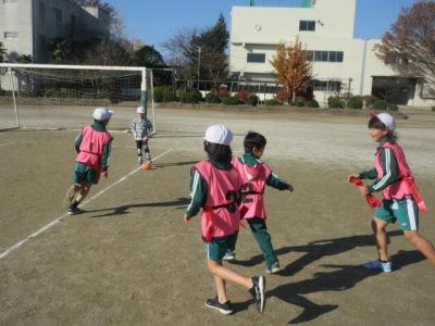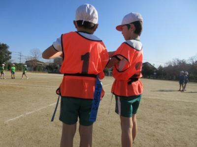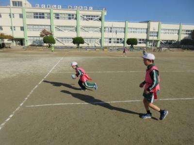 幸松小の3年生が体育の授業でやっているのは「タグラグビー」です