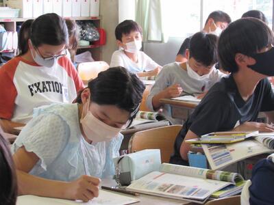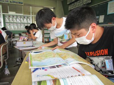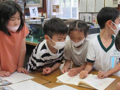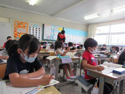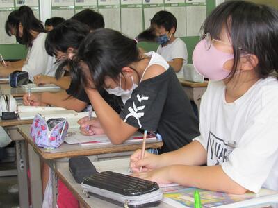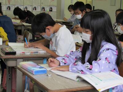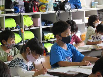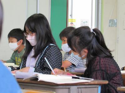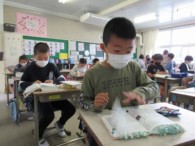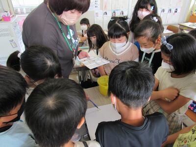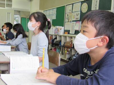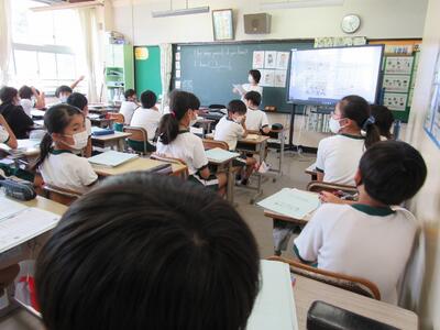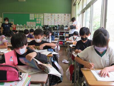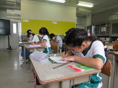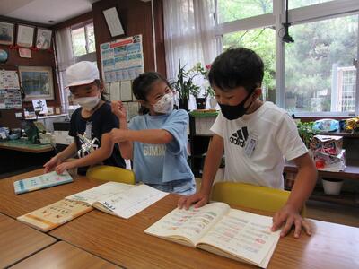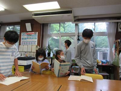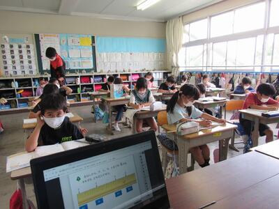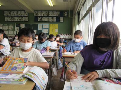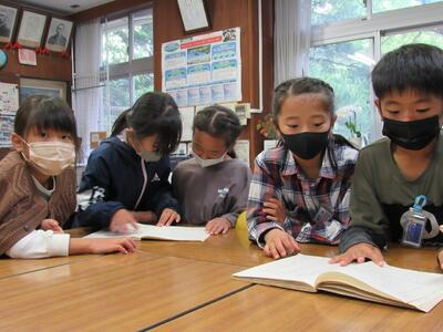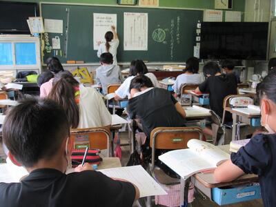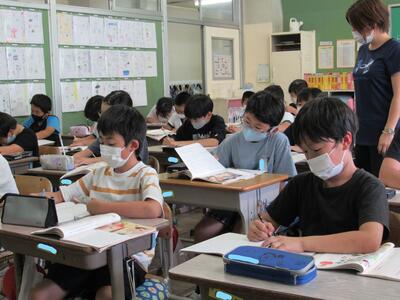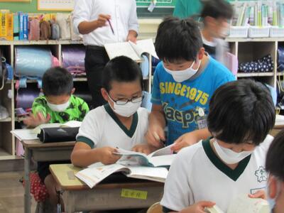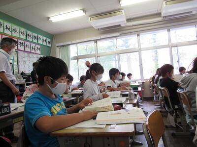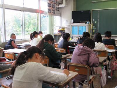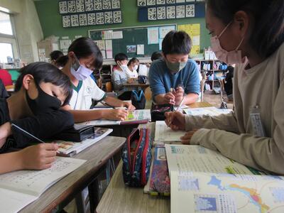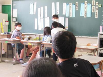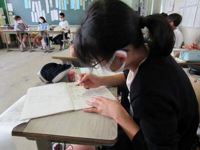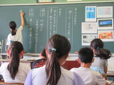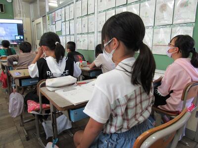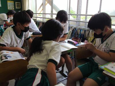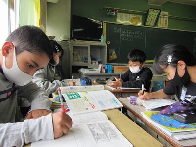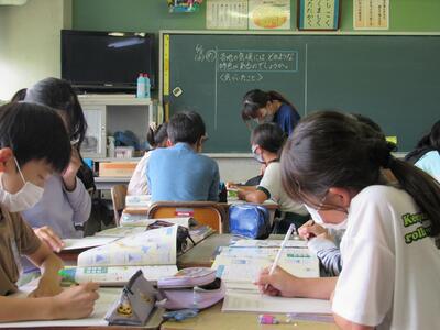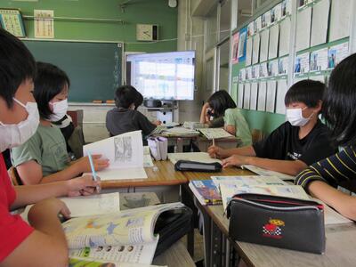 ◆5年生の国語は、報告書に書き込む内容を話し合っているよ。