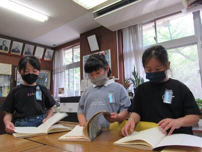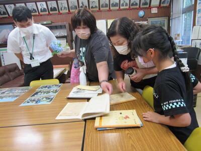 そのあとを追って、3年生3人が興味津々にノートを見つめます。