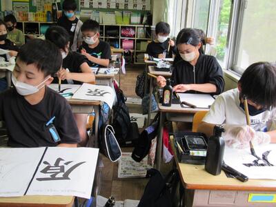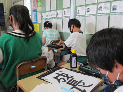 ◆5年生は、はねやはらいのある「成長」という文字を書いているよ。