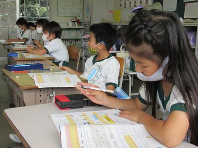 ◆「ひまわり学級」は、算数に取り組んでいるよ。