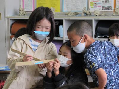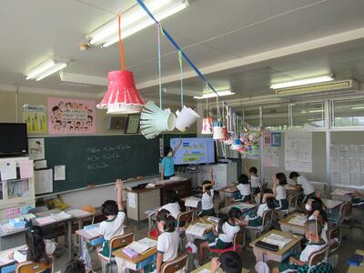 ◆4年生の図工は、ストローや割りばしを使って、表現しているよ。