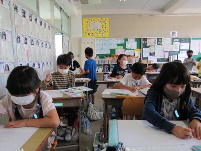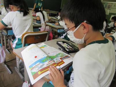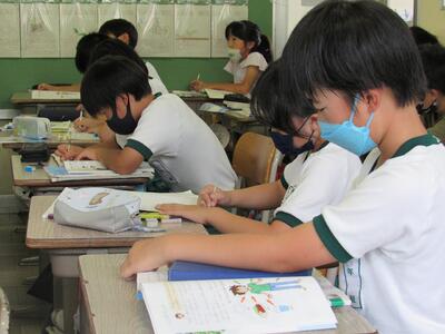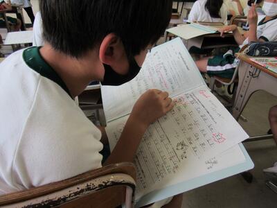 ◆5年生の国語では、先日、私がお願いした報告文づくりを着々と進めているよ。