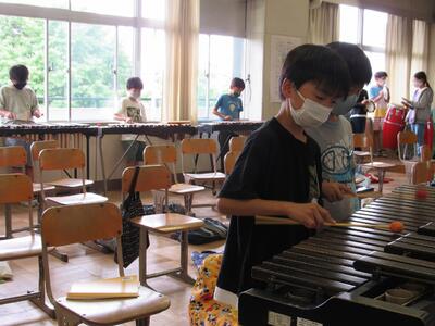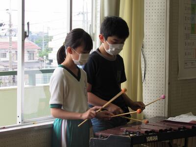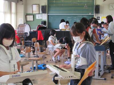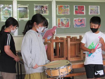 ◆音楽室から5年生の合奏が校舎内に響き渡っているよ。