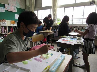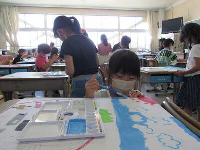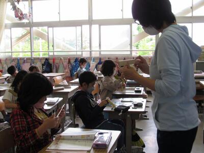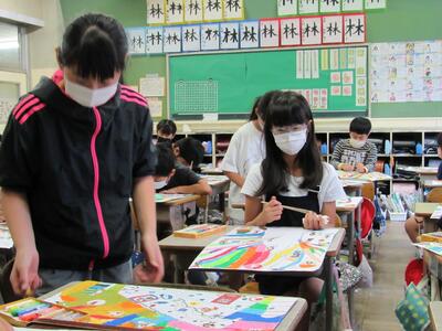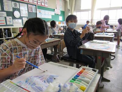 仕上がりが楽しみだねえ、図工と音楽のコラボだね。