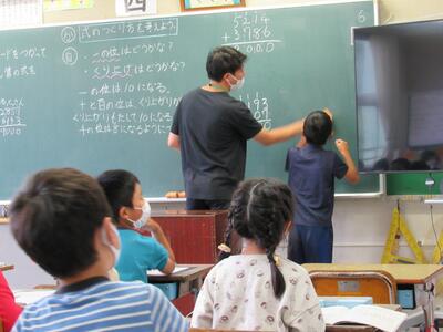 マス目のある小黒板を活用し、ていねいに、分かりやすく指導しているからこそです。