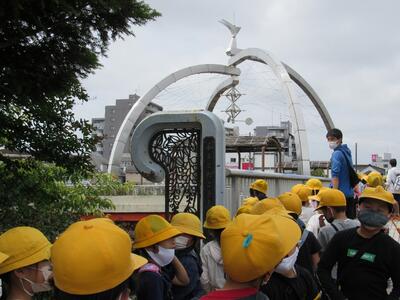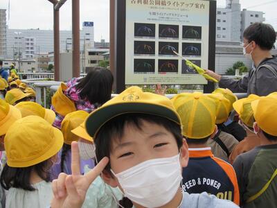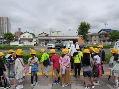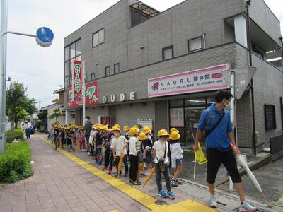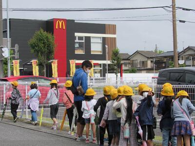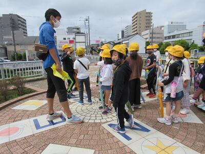 2年生は、朝から学校のまわりのたんけんに出かけているよ。