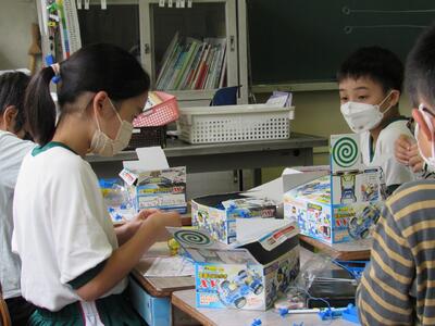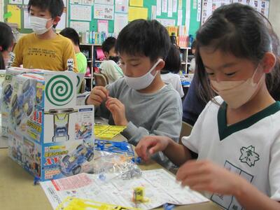 ◆業間休みに、3年生が図工の作品展示に来ています。ありがとう!!
