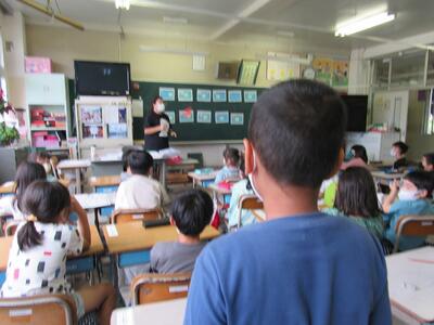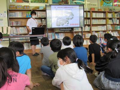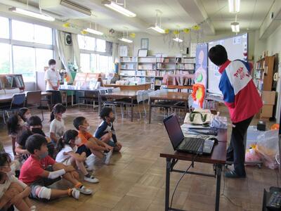 ◆3年生は、ヤクルト主催の「お腹元気教室」に臨んでいるよ。