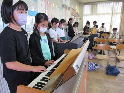 音楽室だけではなく、ろう下、準備室、図工室などを使っているよ。