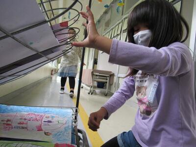 ◆昼休みに、2年生が図工の作品を展示するために校長室へ。