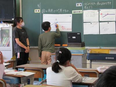 実際に分度器を使って、試行錯誤を繰り返しているね。
