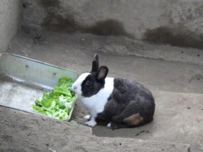 小屋の中では「きなこ」がキャベツを食べていました。