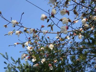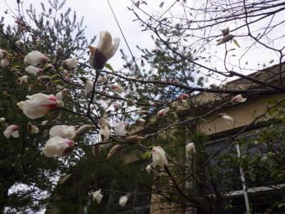 空の青、モクレンの白が目に鮮やかです。