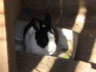 穴から出てきた「きなこ」がキャベツを味わっていました。