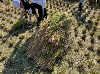 貴重な体験でした。刈った稲は給食にも出るそうです。