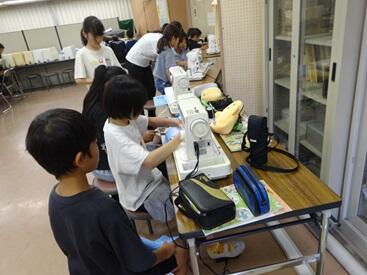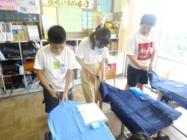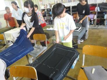 家庭科はミシンの学習 5年生はタブレット入れ  6年生は修学旅行に持っていくナップザック