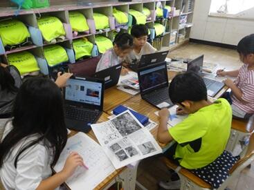 1年生の国語の授業です。タブレットを使いながら授業を進めています。1学期の終わりからタブレットの使い方を学習してきましたが、使い方にもずいぶんと慣れてきました。タブレットの画像を見ながら、まとめ学習をしていました。
