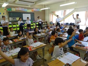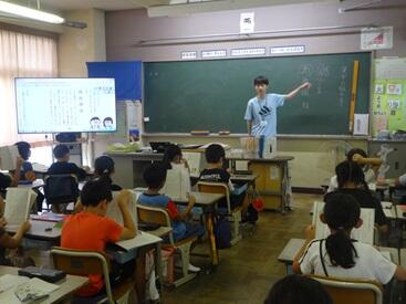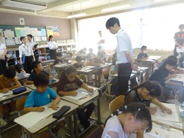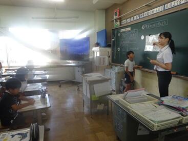 緑小学校には、先生を目指して日々勉強中の大学生、教育実習生が5名きています。少しずつ学校にもクラスにも慣れてきたので、授業を始めています。写真は3年生の国語です。とても落ち着いて授業をしていました。子供たちの声に耳を傾け、子供たちと共に授業を進めています。