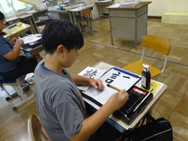 2年生、4年生、あゆみ学級の書写の時間です。2年生は硬筆、4年生とあゆみ学級は習字の練習をしていました。