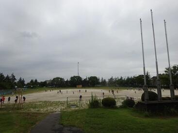台風が近づいているため、今日の外遊びはできないかなと思っていましたが、思いのほか雨は降らず、久しぶりに校庭で遊ぶことができました。子供たちは久しぶりの外遊びだったので大喜び。元気に走り回っていました。