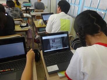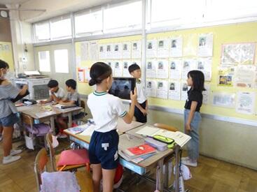 4年生の国語の時間です。インタビュー動画を撮影しているところでしょうか。何度かリハーサルをして、本番。緊張しながらも上手にインタビュー動画を撮ることができたようです。